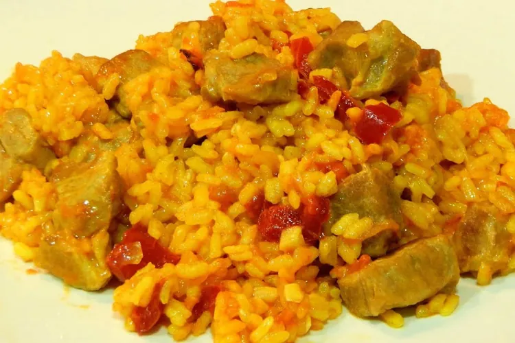 Arroz con tropiezos. Ingredientes: 1 kg de carne de ternera, de pollo y costillas 2 o 3 dientes de ajo Perejil ¼ de salchichas Pimientos 1 limón Arroz Sal Preparación: Es éste un plato muy popular en Asturias a la vez que muy sencillo de realizar y sobroso. Comenzamos cortando la carne en pequeños trozos (carne de ternera, de pollo y costillas) que se sazonan de ajo y se dejan reposar. Mientras, ponemos aceite en una cazu ...